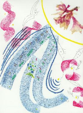 Pastels et collages d’algues roses de Bretagne, associés à des poèmes